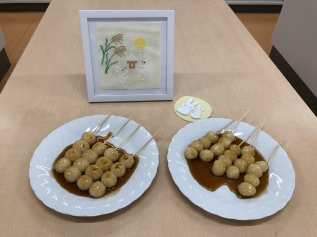 文化祭も終わり、遅ればせながらのお月見をしました。甘辛たれのみたらし団子とお月見のクロスステッチやフェルトの飾り。生徒と教員とで丹精こめてつくりました。今後も季節を感じられるお菓子や裁縫に挑戦していきたいと思います。