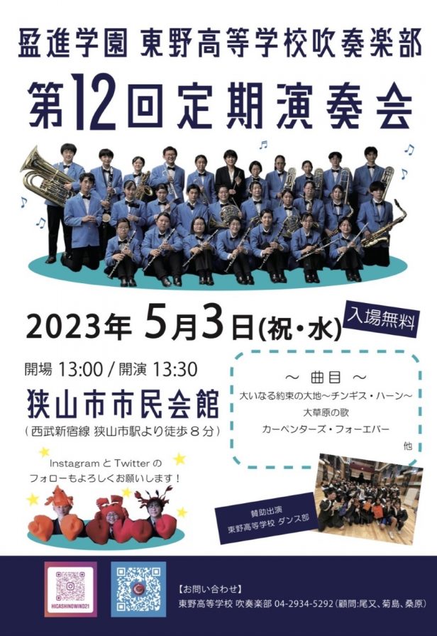 皆さん、ぜひ5月3日は、狭山市市民会館にお越しください。顧問、部員一同、皆様のご来場をお待ちしております!