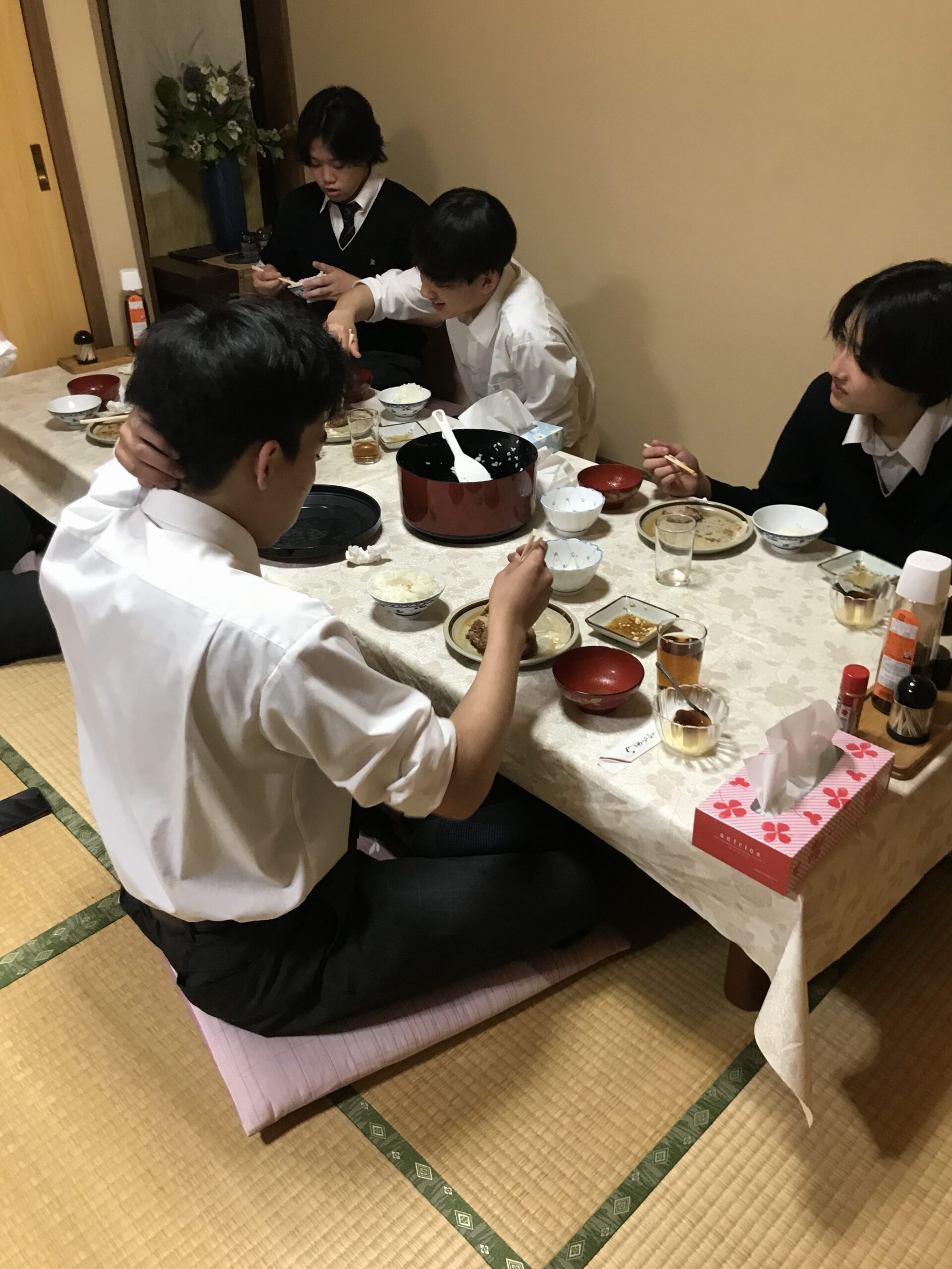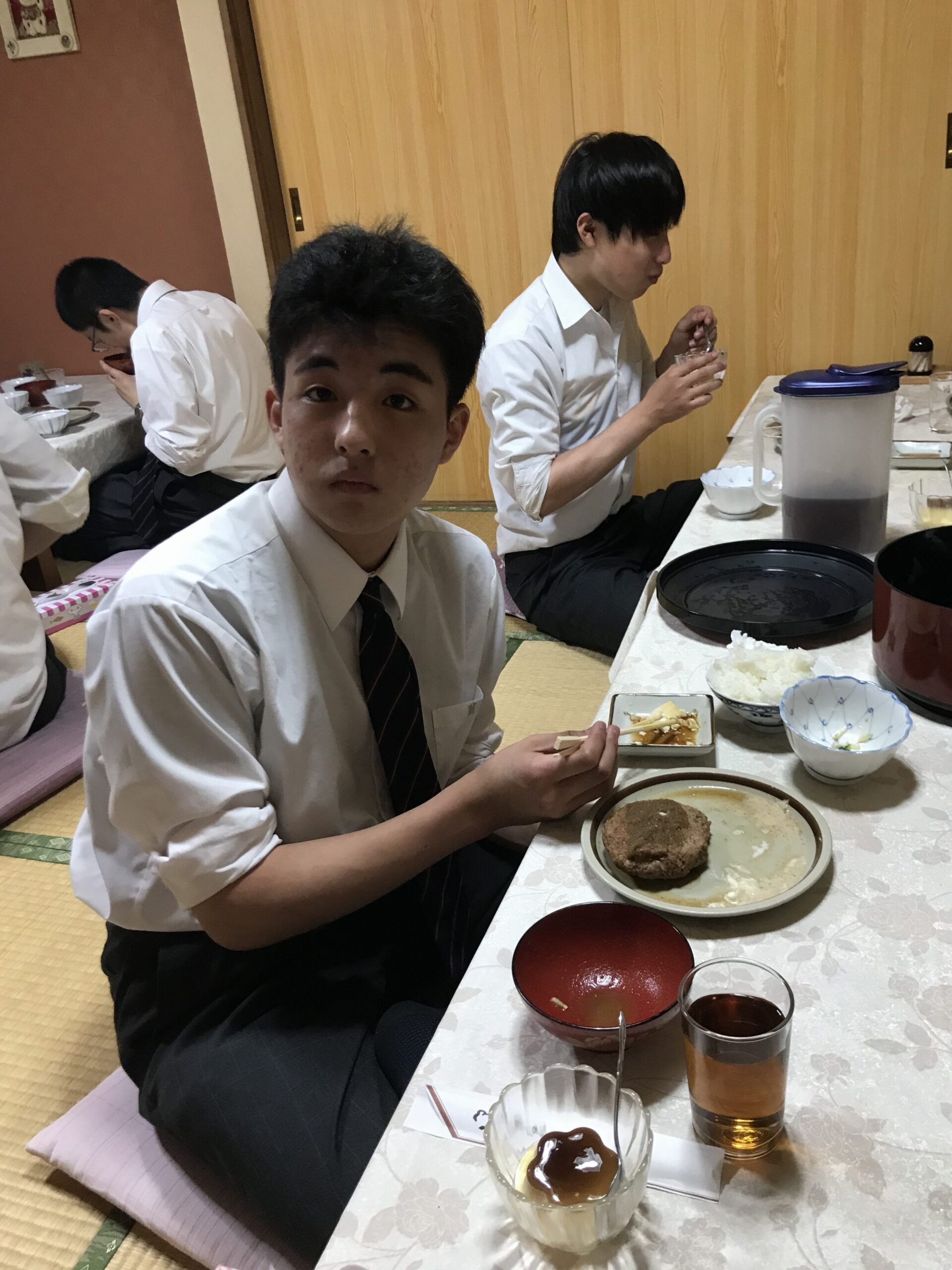 食事が美味しいのと、沢山の試合を重ねお腹が空いていたのもあり、全員完食。仲間と過ごすことで連帯感も高まりますね。