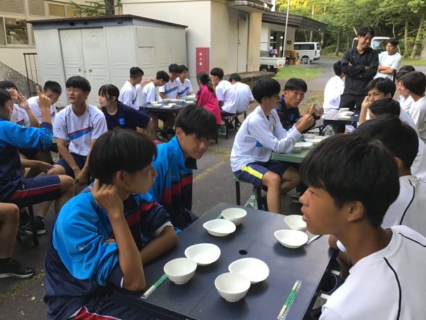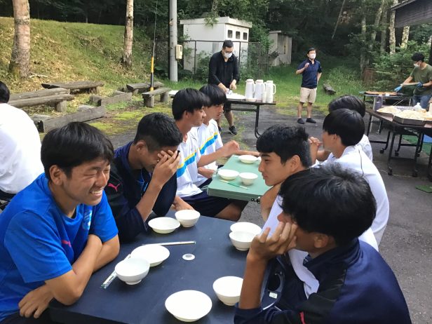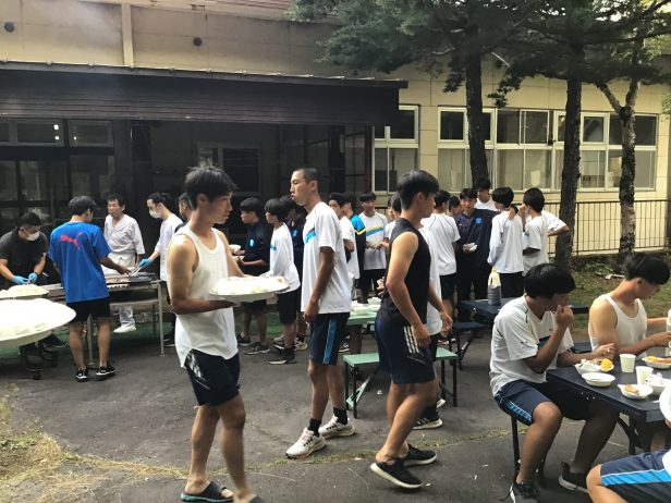 また今日の夕食はバーベキューでした。選手たちは焼いていただいたお肉や焼きそばを美味しく食べていました。