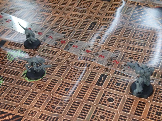 ティラニッド陣営(左)とスペースマリーン陣営(右)の戦闘