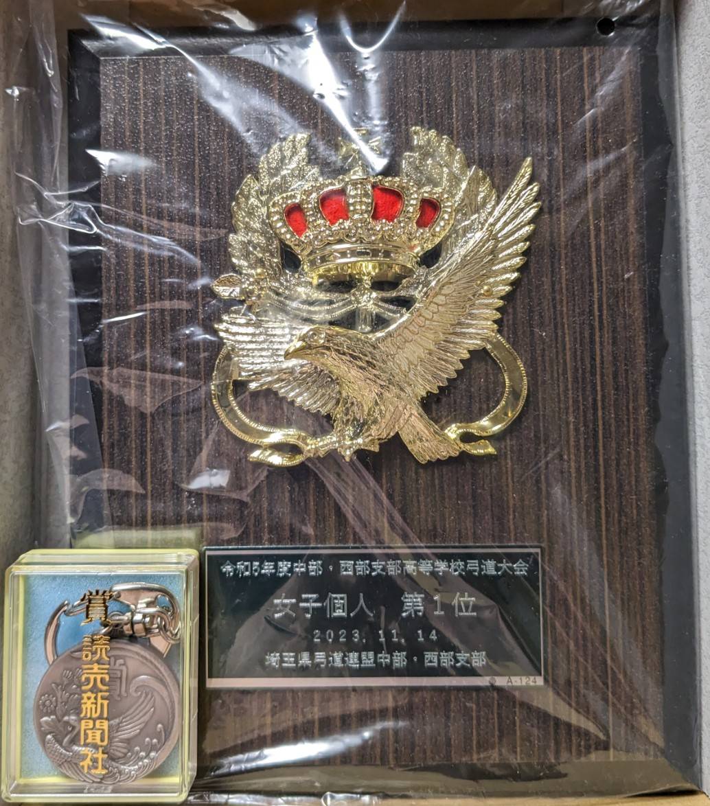 伊藤香穂さん(1-A7)が8射6中を出し、当日の最高的中として優勝決定競射にのぞみました。この競射を勝ち抜いて、見事個人優勝を勝ち取りました!!