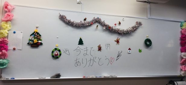 でも、今日のメインは何といっても「ありがとうの会」。9月の文化祭が終わり、引退をした3年生に感謝の気持ちを伝えられる会ができたらいいね、とすぐに動き出した1、2年生。3年生の受験がひと段落して、試験休みに会を開きましょうとお話してから、どんな演出がいいかな、サプライズがしたい、と様々にアイデアを出してくれました。そして迎えた当日。季節柄、クリスマスの飾りで装飾し、用意したお菓子と色紙を思い思いに手渡す部員たち。3年生が喜んでくださる姿を見て、こちらも心が温まり、うれしい気持ちになりました。人を想う心はいつまでも持ち続けたい、改めて部員から教えられたように感じます。