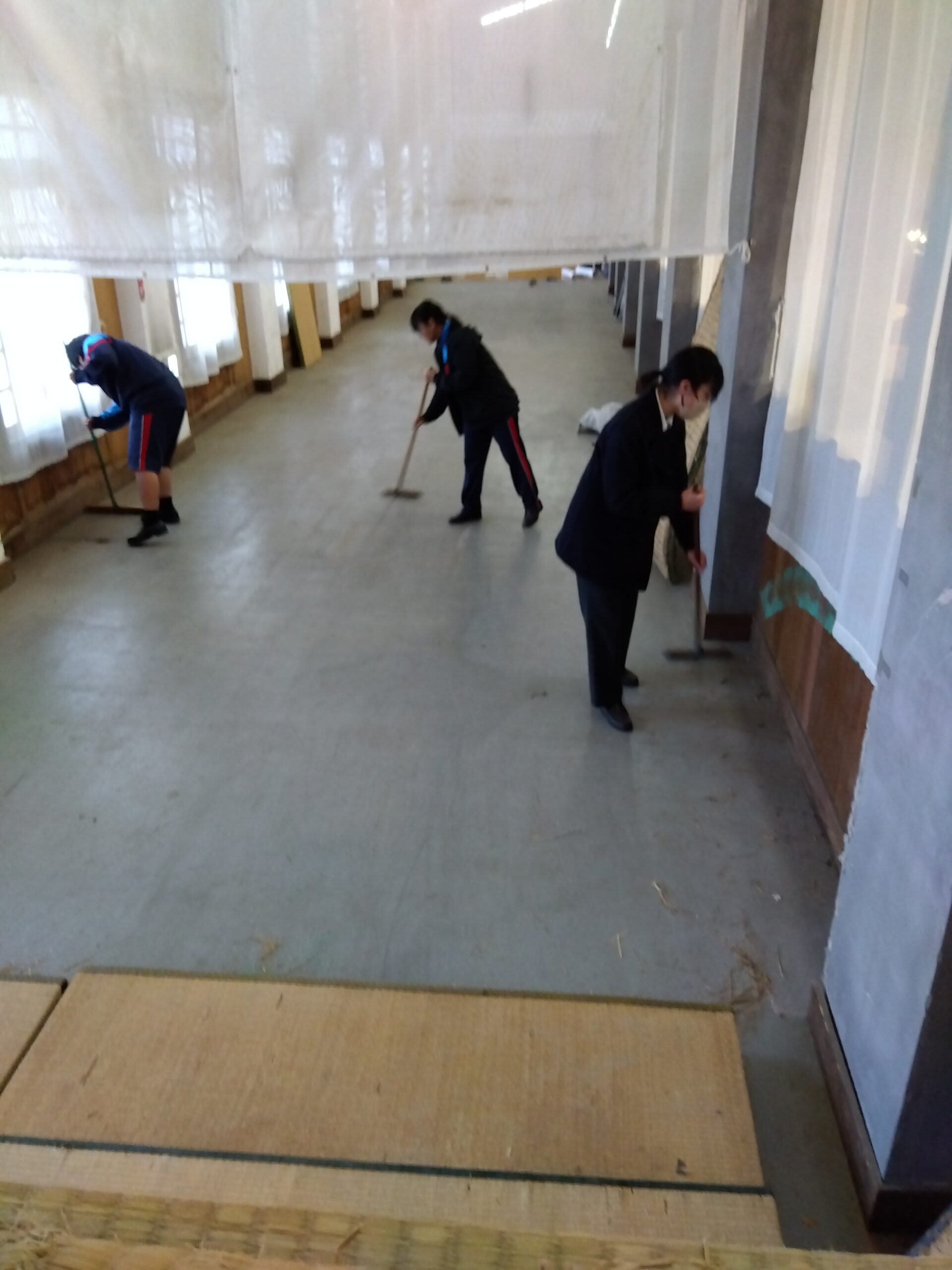 年末、学校の弓道場の大掃除を行いました。午前中は年内最後の練習を行い、1年の稽古を締めました。
