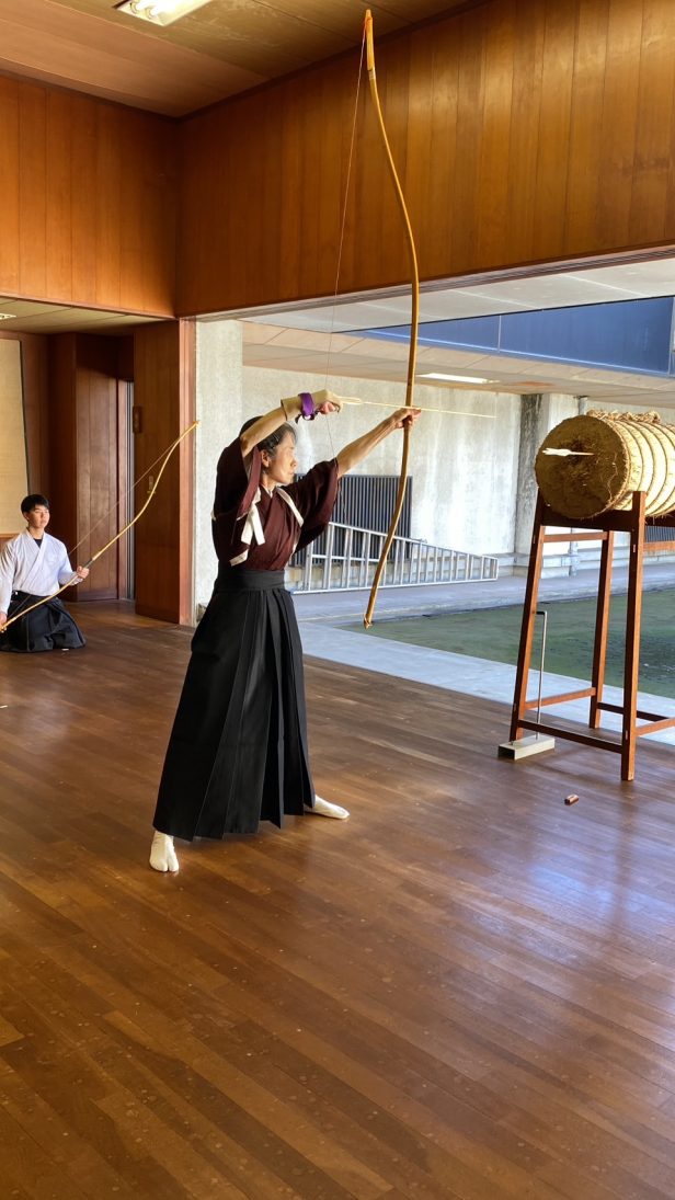 巻藁射礼では矢を離すときに「矢声」を出します。