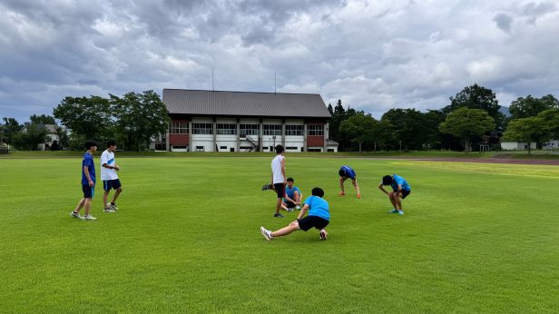 練習場所は宿舎から妙高IC付近にある県のスポーツ公園で、初日は貸切での練習でした。