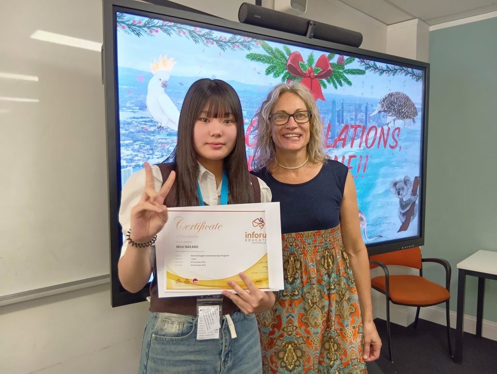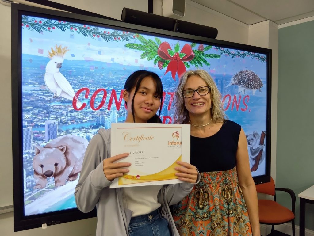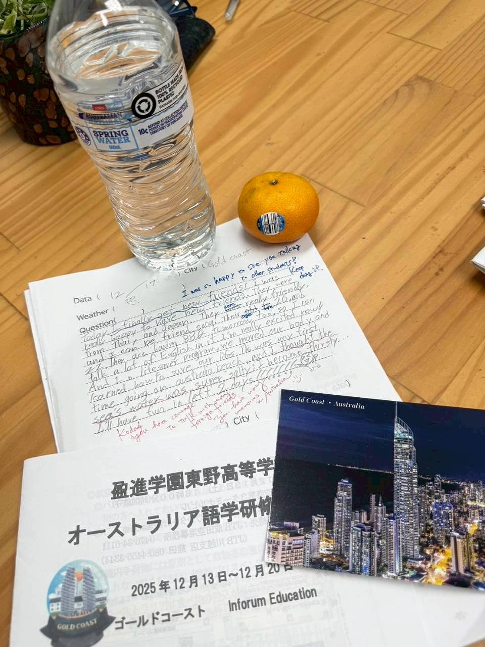 代表生徒が感謝の気持ちを述べ、ミズキさんからも「この経験が日本の未来に繋がることを祈ってます。」とあり、全員がミズキさんと大きなHugをして別れを惜しみました。いよいよ明日はオーストラリアを出発するので、ホストファミリーと過ごすのが今日で最後となります。