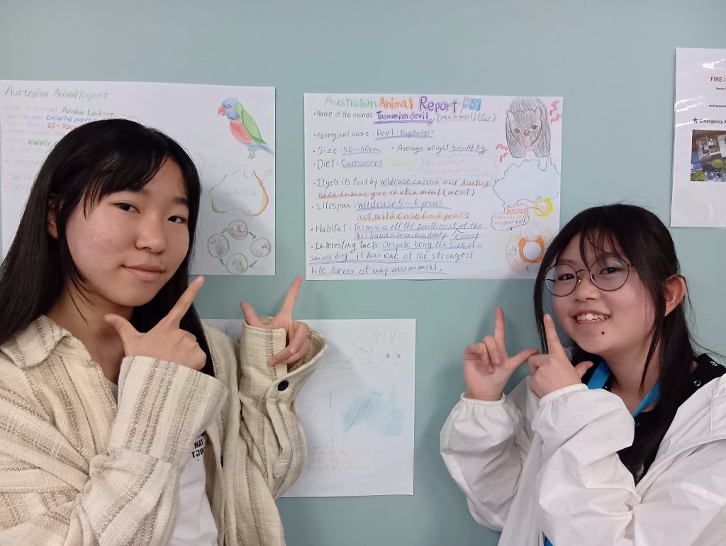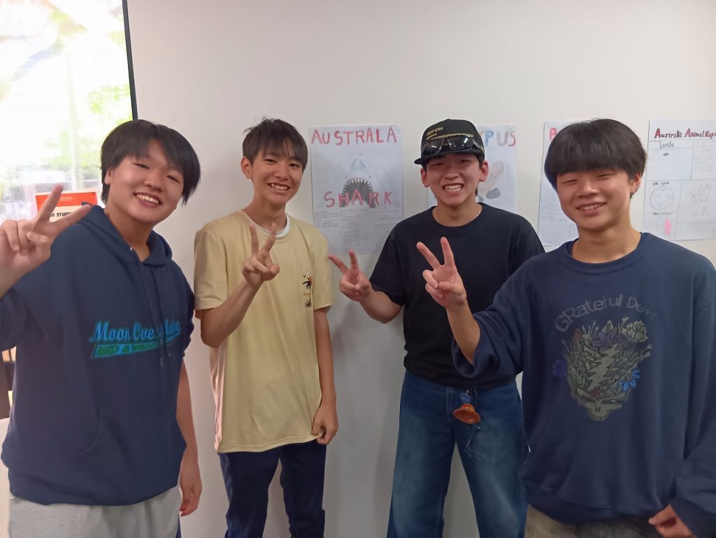 午前はオーストラリアの動物について調べて、各自で発表。そしてtaste表現を英語で学びました。特に二人一組になり、目をつむっている生徒が食べたものの味を英語で答えるというアクティビティが盛り上がりました。saltyでbitterなベジマイトの味には驚きが隠せない生徒がほとんどでした。