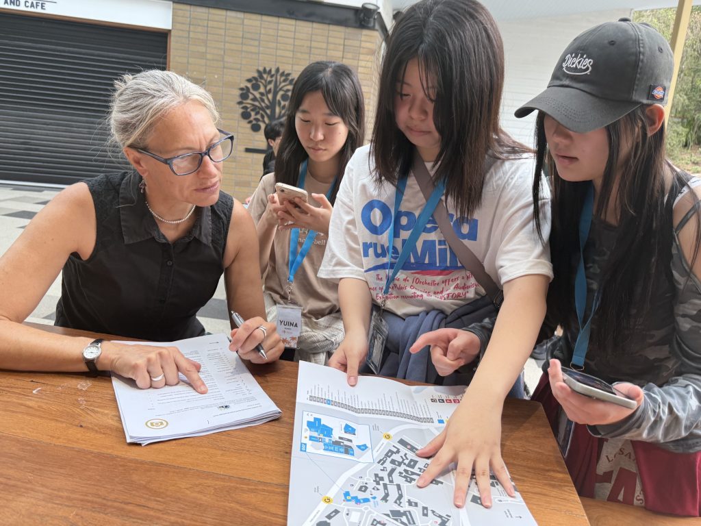 午前中の授業では、目的地までの説明の仕方やGriffith大学のスクールマップで実践的な英語表現を学んでいました。午後はその実践英語を使った「Scavenger Hunt」にチャレンジしました。