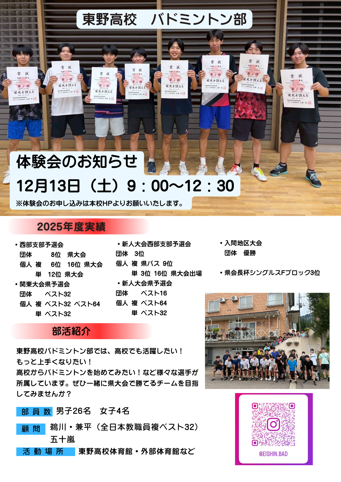 ※体験会以外の日程でも体験は可能です。 学校(04-2934-5292)、もしくは顧問:兼平(070‐1433‐5273)までご連絡ください。