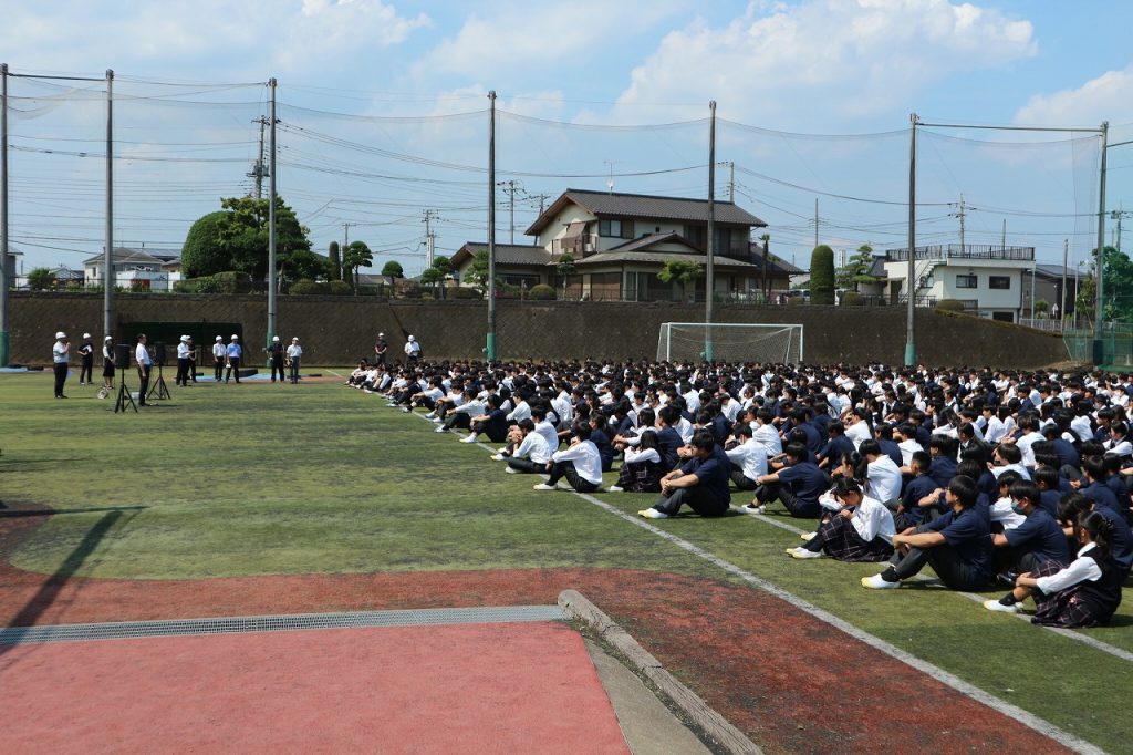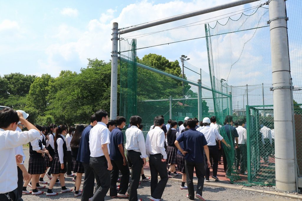 この訓練は、災害時に生徒・教職員が安全に避難できるよう、避難経路と避難場所の確認を行うとともに、「命を守る」行動がとれるよう、生徒の防災意識を高めることを目的としています。