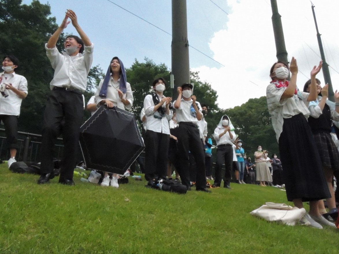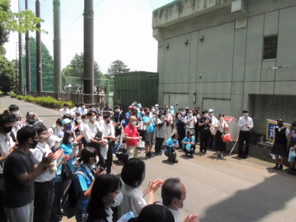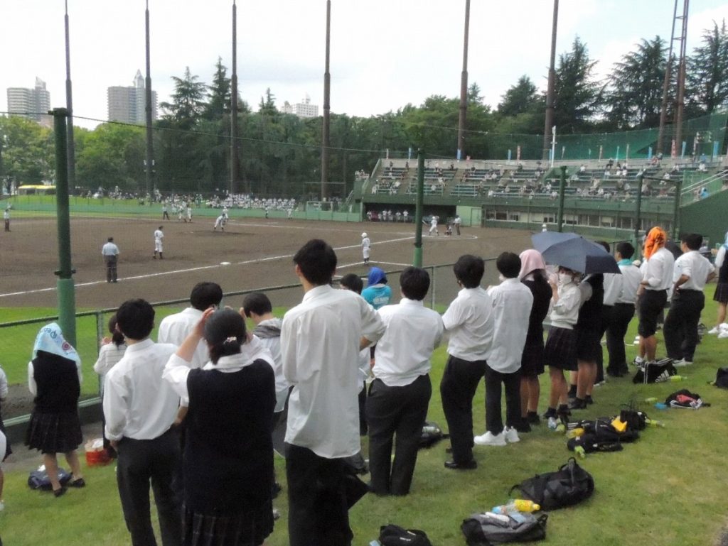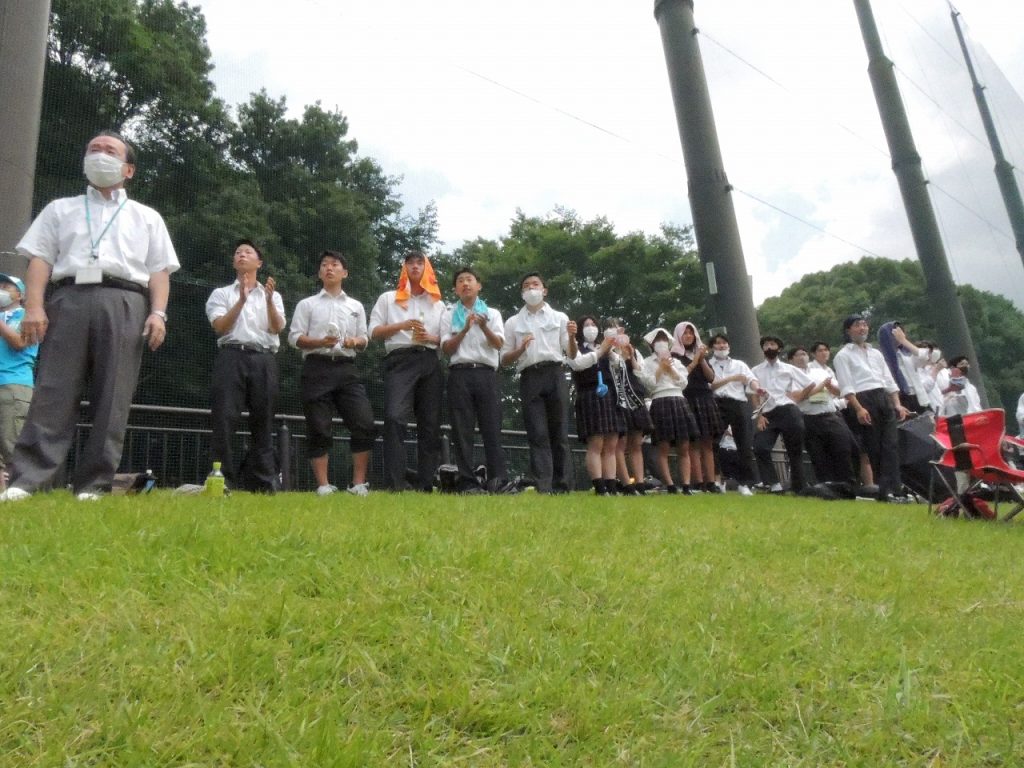 関東地方は梅雨明けした猛暑の中でしたが、在校生、教職員、保護者ら約100人がスタンドに。最後まであきらめずプレーする選手たちに大きな声援を送りました。