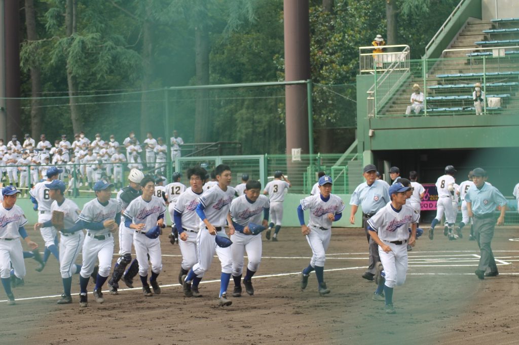 全国高校野球選手権大会(夏の甲子園大会)埼玉大会に出場の野球部は3回戦に進み16日、所沢航空記念公園野球場で細田学園と対戦しました。シード校の強豪相手に中盤まで食い下がったものの力及ばず敗れました。