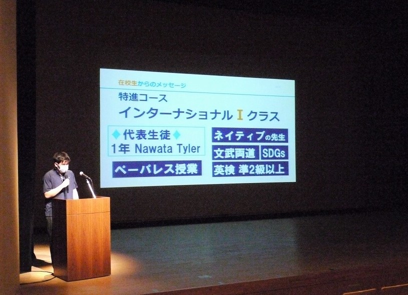 続いてインターナショナルIクラス、Sクラス、Aクラスの生徒が登壇、それぞれのクラスを選んだ理由を説明し、勉強とクラブ活動との両立に苦労しながらも充実した学校生活をおくっていることを話しました。