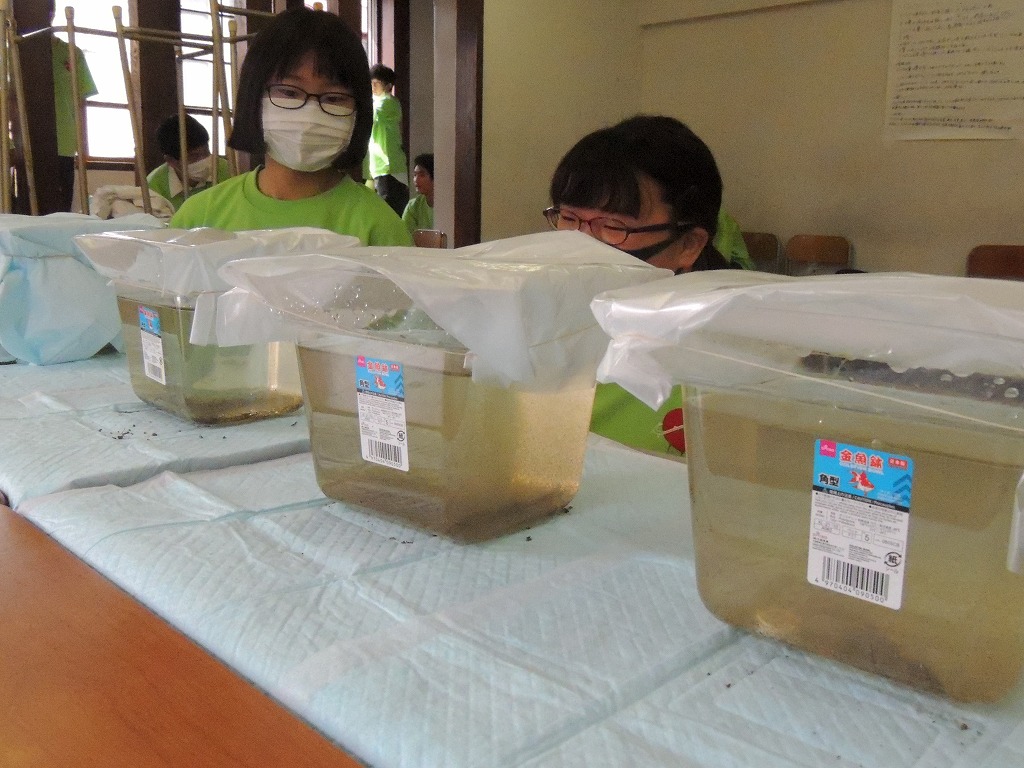 どじょうを展示。池に放流しました