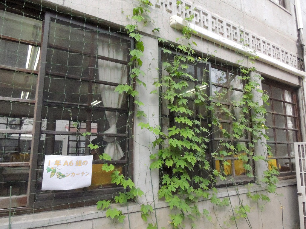 教室の窓には緑のカーテン