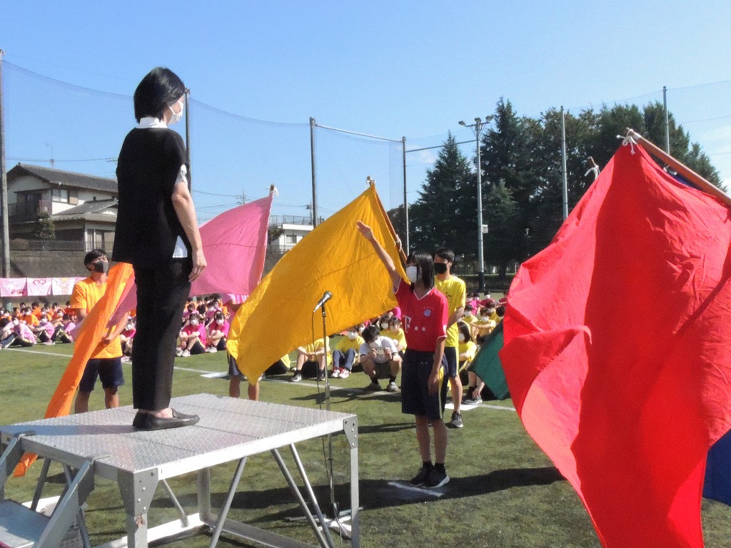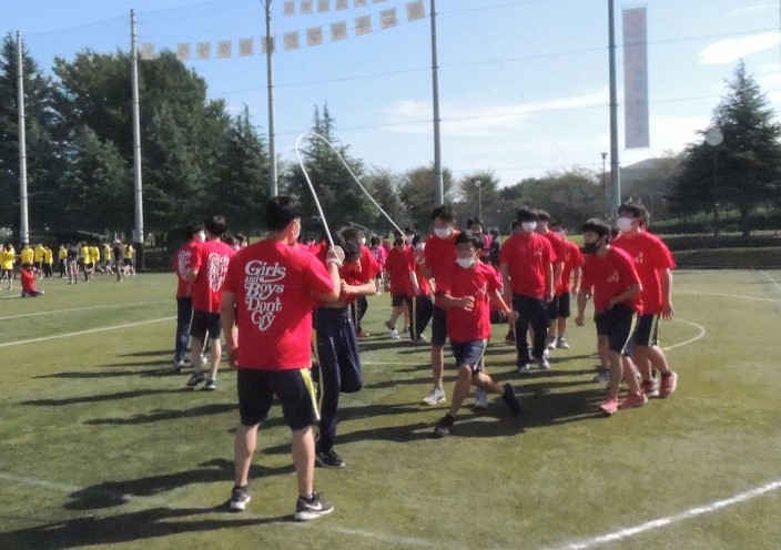 新型コロナウイルス感染症の感染防止、「3密」回避のため、グラウンドに全校生徒が集まることはせず、出場する生徒が競技ごとにグラウンドに集合し、待機時間は教室でライブ中継を視聴するという初めての試みでの体育祭となりました。