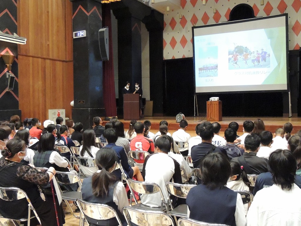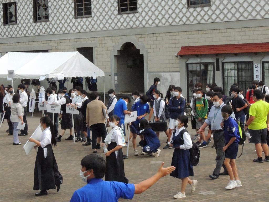 大講堂で生徒会役員が学校や部活動の様子を紹介した後、中学生・保護者のみなさんを各部員が練習会場に案内しました。
