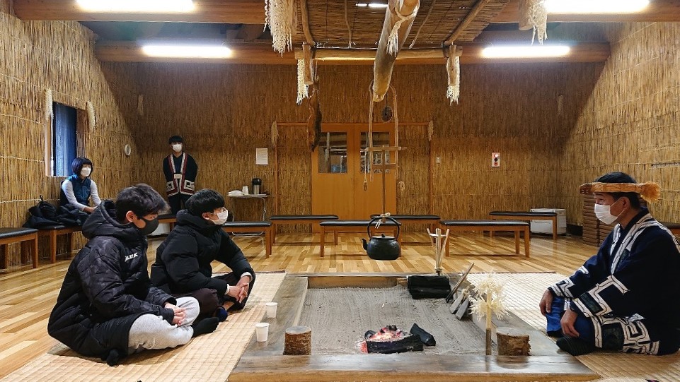 アイヌの歴史やことば、自然観などを学ぶためのさまざまな展示や体験が用意された「ウポポイ」行きにあたって、生徒たちは旅行前の事前学習にも取り組みました。