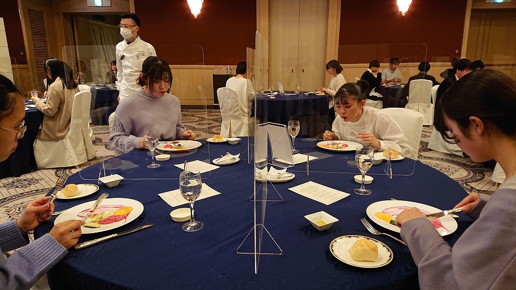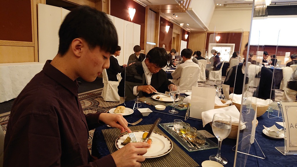 洞爺湖畔でのホテルの宿泊を機会に、コース料理のテーブルマナーを学びました。