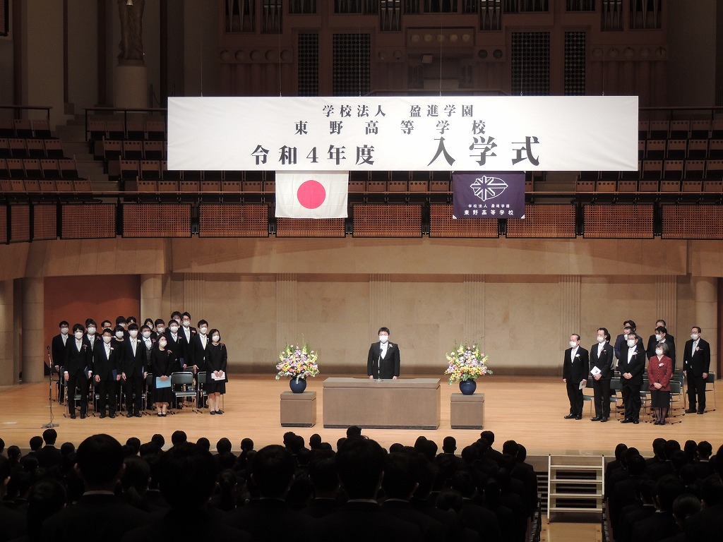 あらためまして、保護者の皆様におかれましては、本日のお子様の東野高校への入学を心よりお喜び申し上げます。私たちは、教育に携わるものとして、謙虚に覚悟をもって努力して参ります。盈進学園創始者丸山鋭雄の言葉を胸に。