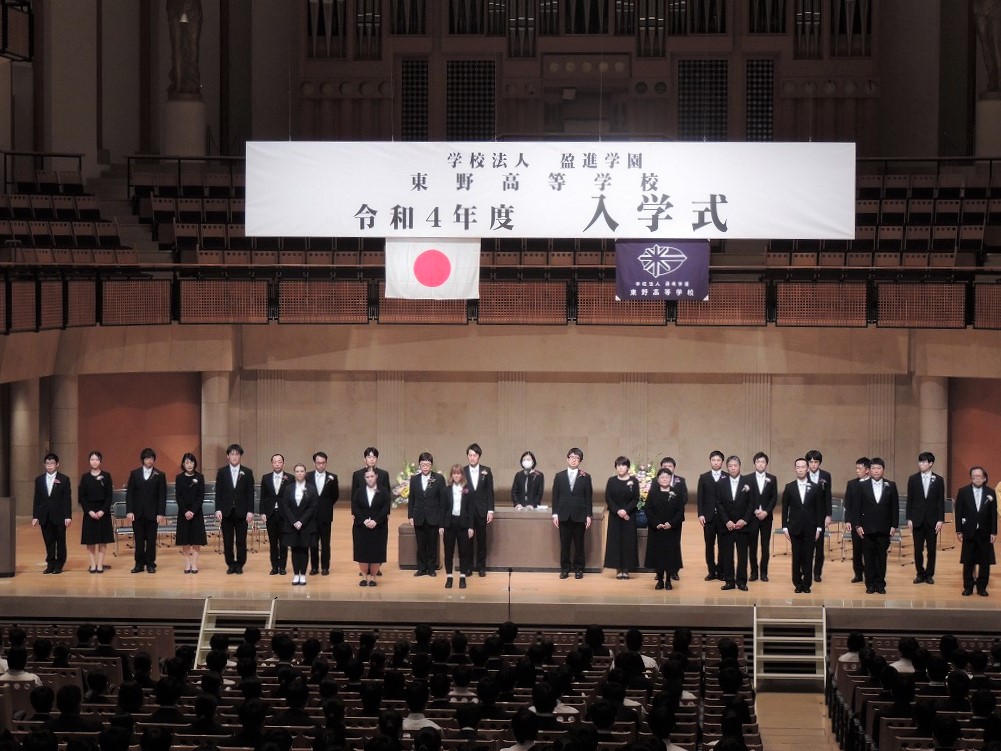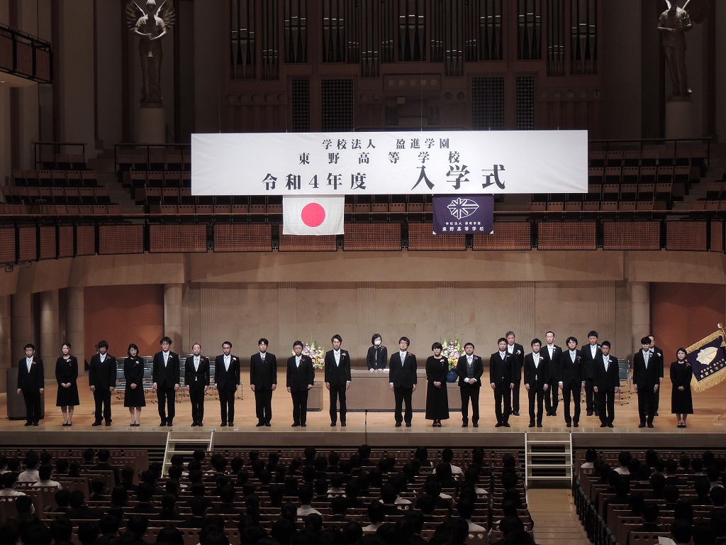 春風が、桜の花びらを舞い散らせ、緑の葉が目につくようになりつつある春たけなわの今日の良き日、多くの来賓の皆様にご臨席を賜り、また保護者の皆様のご参列のもと、東野高等学校第38期生の入学式をここ所沢ミューズにて挙行できますこと、大変ありがたく本校を代表いたしまして感謝申し上げます。