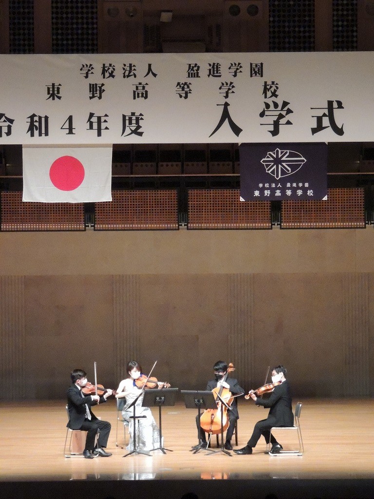 これから始まる高校生活の前に短時間ではありますが、心を癒していただければとの思いから、入学式、始業式に続き東京シティ・フィルハーモニー管弦楽団メンバーによる弦楽カルテットの演奏を音楽鑑賞会として企画しました。ご家族のみなさまともども、楽しんでいただきたいと思います。