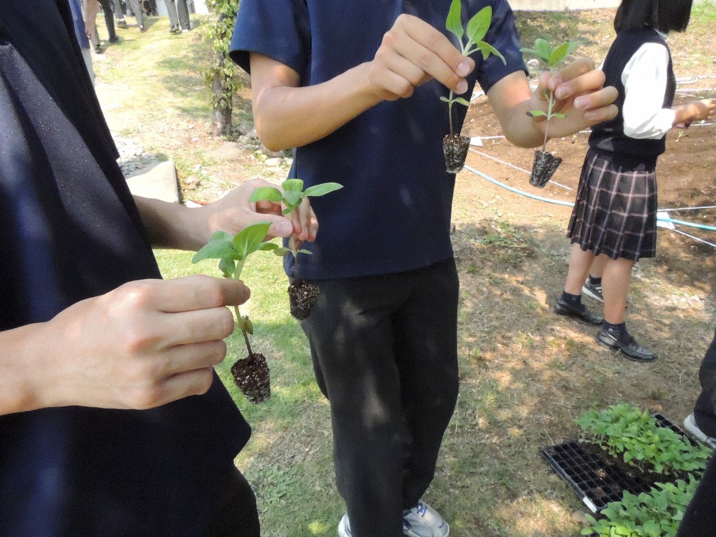 「ひまわり畑」をつくろうーー生徒が苗を定植<2日>
