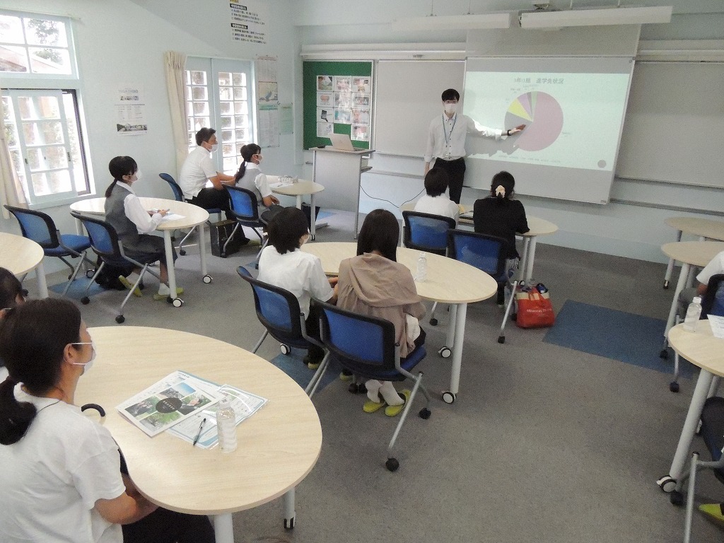 前日(7月30日)の第1回学校説明会と同様、予約制で午前、午後の2部構成で行いました。