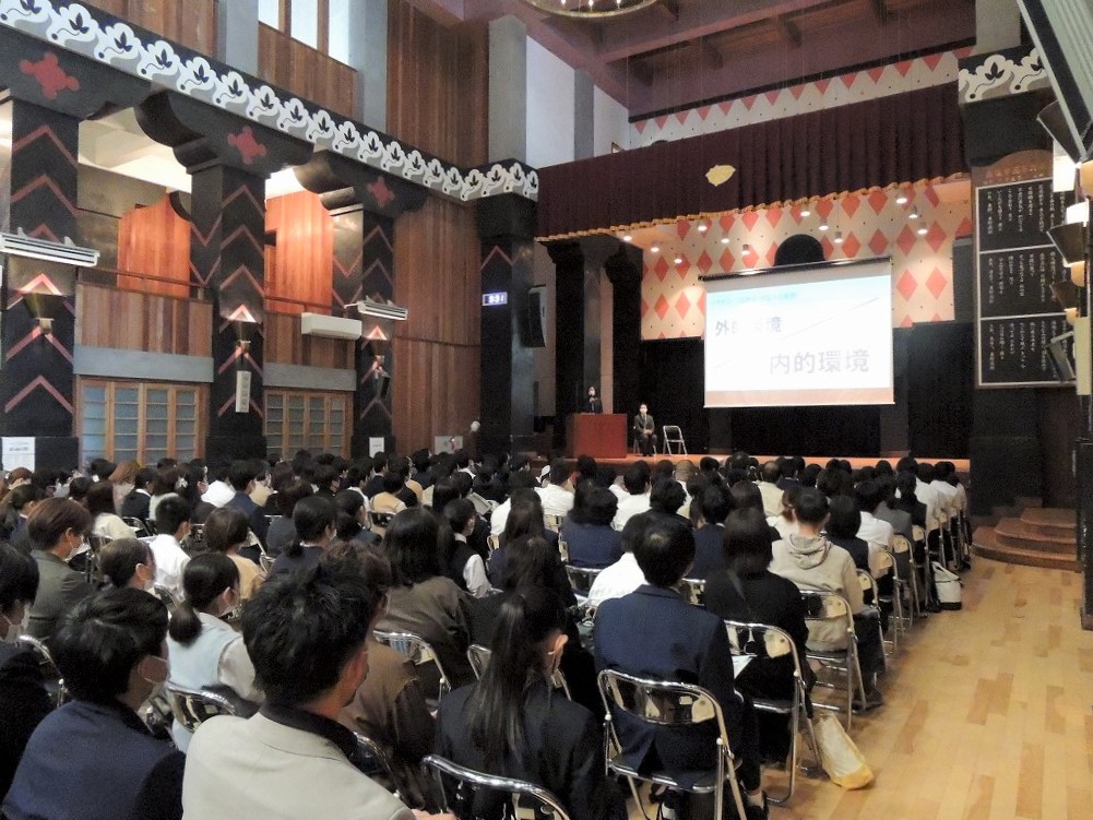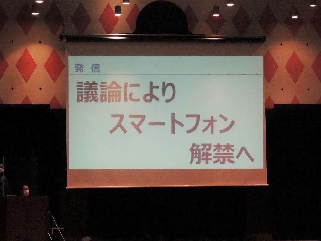 北村陽子校長が今年度の学校の方針として「発信・安心」を掲げていることを紹介。コロナ禍のもとでも学校行事を一つひとつ大切にしながら、学校に通って学ぶことの重要性を改めて感じている、などと話しました。