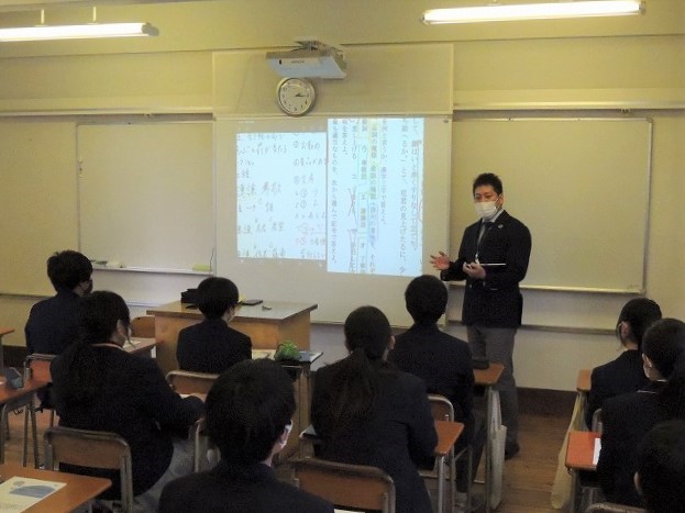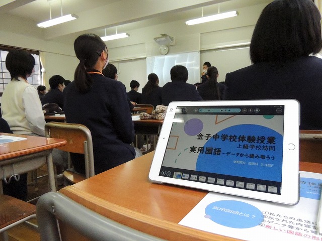 続いて金子中のみなさんは2クラスに分かれて国語、英会話の授業を体験しました。