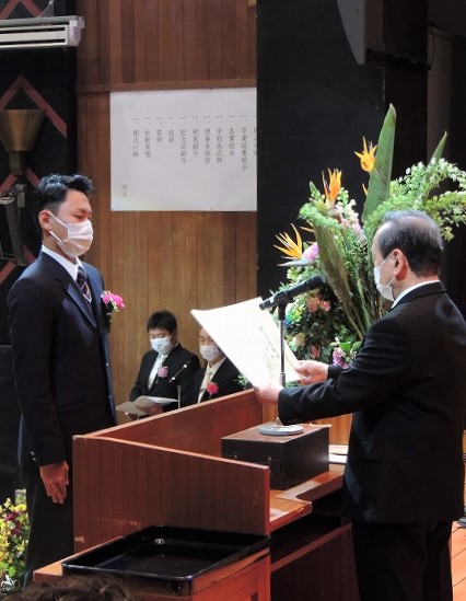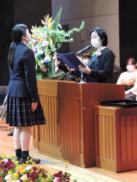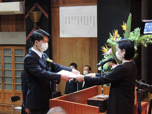 卒業生全員の名前が呼ばれ、各クラス代表が登壇、北村陽子校長から卒業証書を受け取りました。