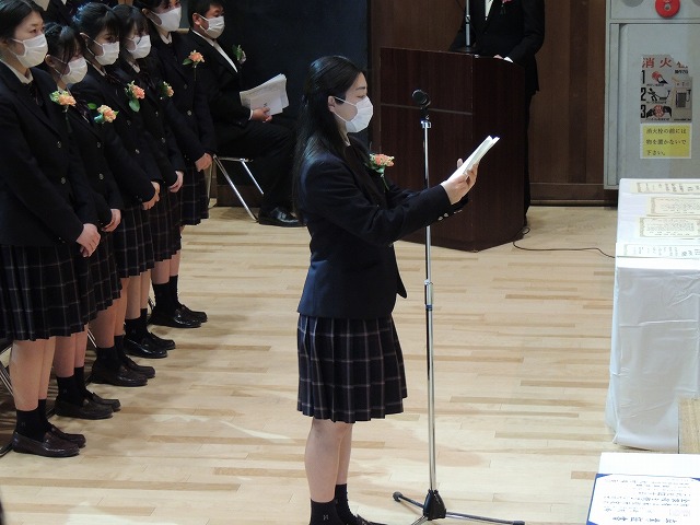 答辞 卒業生代表 飯塚優杏