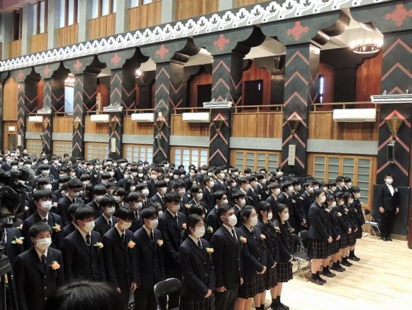 この間は、学校としても常にコロナ感染症対策を講じなければならず早急の決断を迫られる日々でした。しかし、学校文化の中心を成す行事において実施方法を工夫しながらもほとんどをやり遂げられたことに安堵の気持ちを持つとともに君たちが冷静に坦々と現実を受け入れながら、進めてくれたことには感謝の念に堪えません。君たちの高校生活は、すべてにおいてマスク生活を余儀なくされ友の顔もしっかり見ることが出来ずに過ごすしかありませんでしたが、学校に通い学ぶことによって形成された心のつながりは何物にも代えがたいものとなったことでしょう。