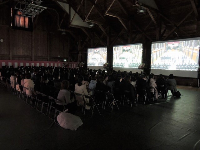 また、保護者の方々には別会場にてスクリーンを通してではありますが、同じ敷地内でお子様方の門出を祝っていただきたいと考えました。多くの保護者の方々にご来校いただきましたこと心より感謝申し上げます。