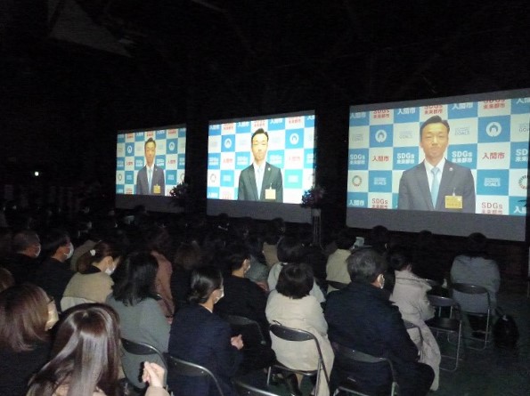 杉島理一郎・入間市長からの卒業生への激励のビデオメッセージを披露しました