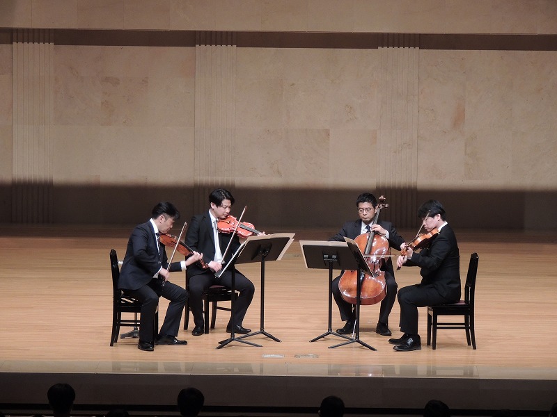 入学式の後には1学期始業式があり、続いて音楽鑑賞会で弦楽四重奏団の演奏を楽しみました。