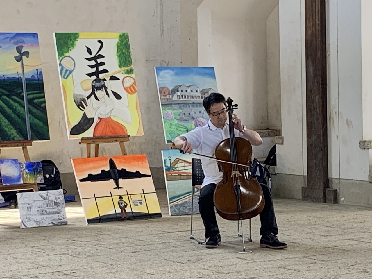 多目的ホールにて—卒業生・二宮道成さん(6期生)によるチェロの演奏