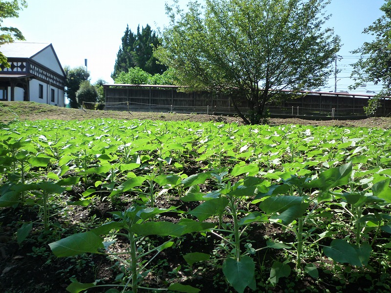 傾斜に植えられた「ひまわり」について説明しています