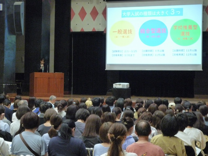 続けて学年主任からは、本日午前中に開かれた大学説明会や学校生活の話、そして進路指導部からは、大学入試の話と非常に盛りだくさんの内容となりました。