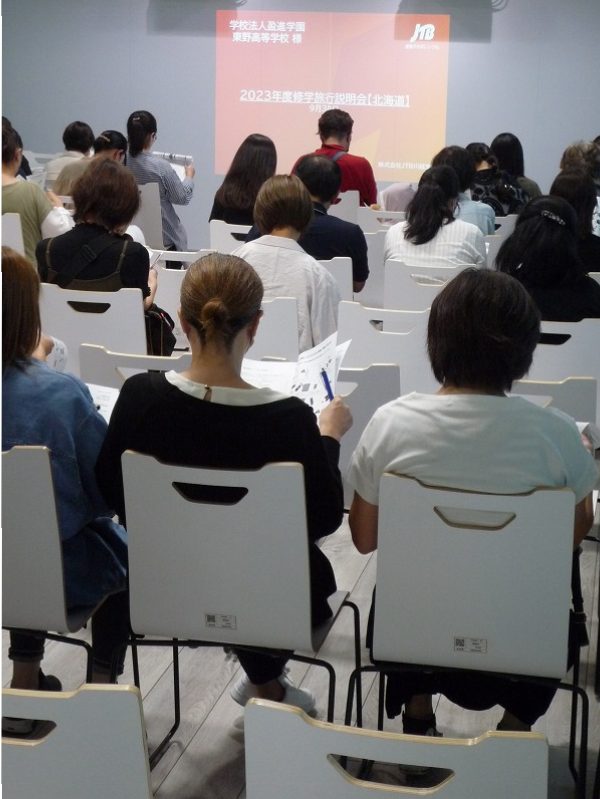 その後、修学旅行の行き先別に担当者から説明、最後に各クラスに分かれてクラスの様子についてのお話がありました。