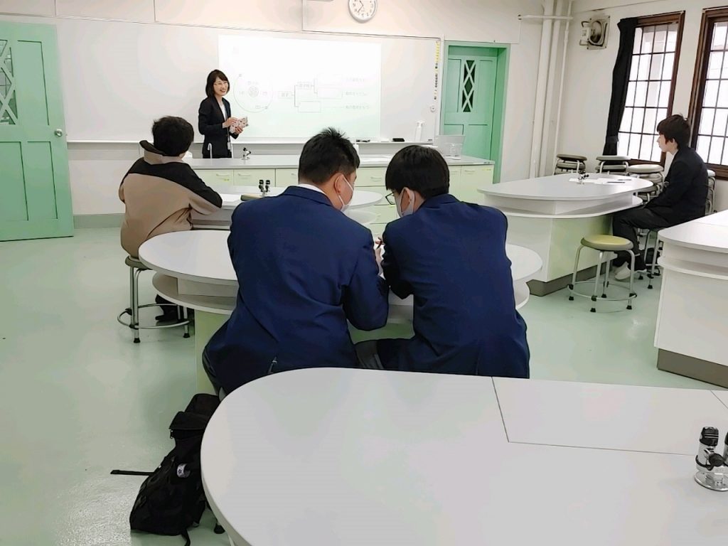 写真(左):理科の授業「周期表を読み解く」(理科室にて)