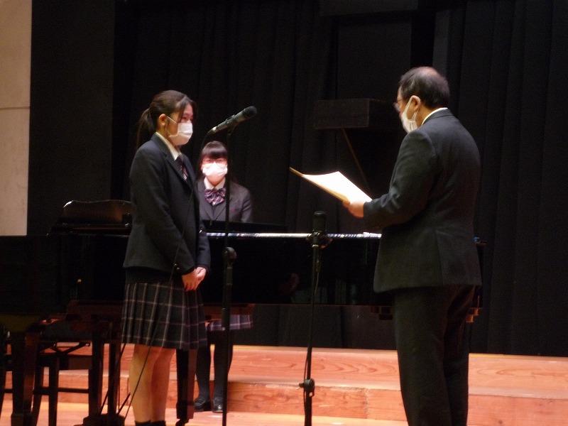 伴奏者賞・・・2年A6組 見留 弘奈さん、1年I1組 長﨑 彩夏さん