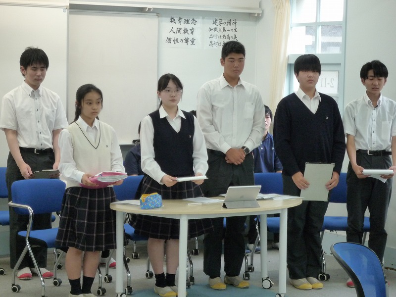 総会では今年度の生徒会予算が教室ごとに賛否の数を集計し、承認されました。また、生徒会は昨今の世界情勢から「平和」をテーマにした企画を文化祭で発表することや、生徒会が設置した「意見箱」にあった生徒の要望に対し、後期の生徒総会までに方針を決定することなどの報告がありました。