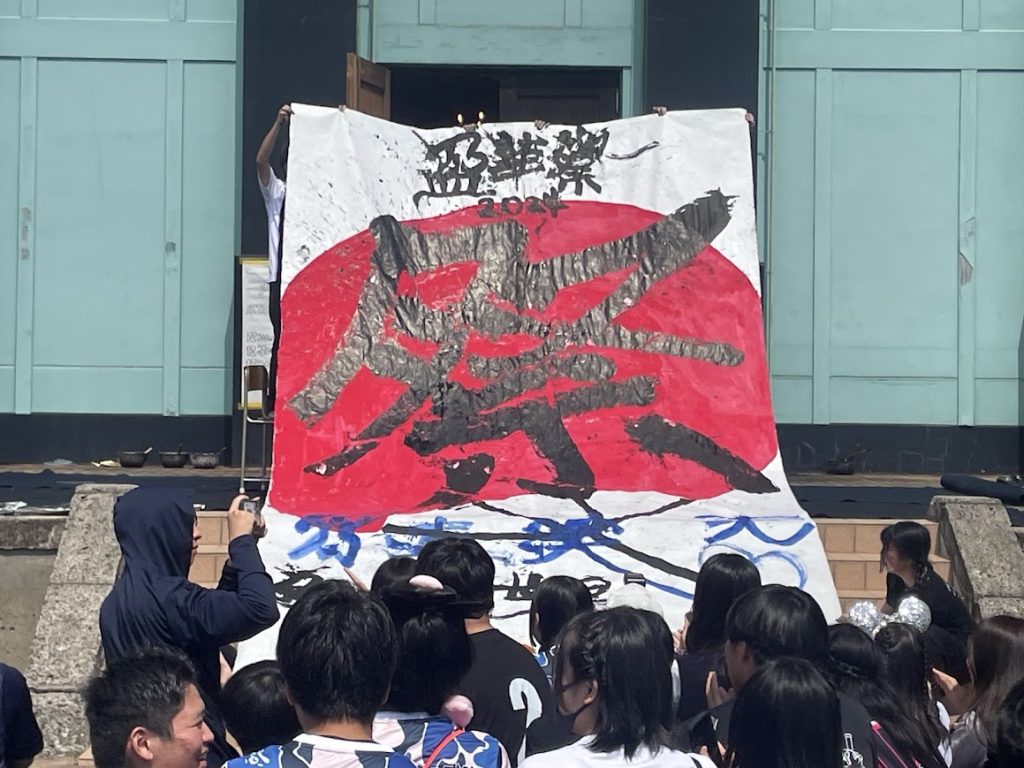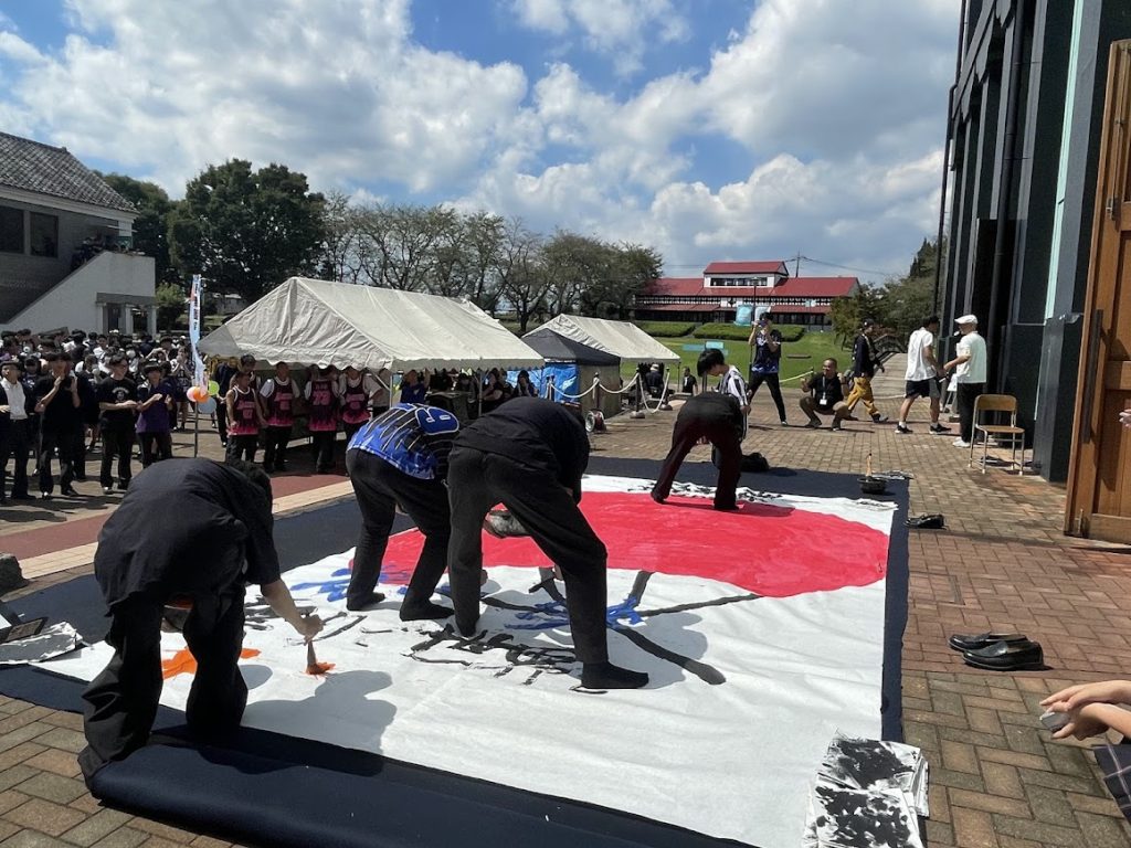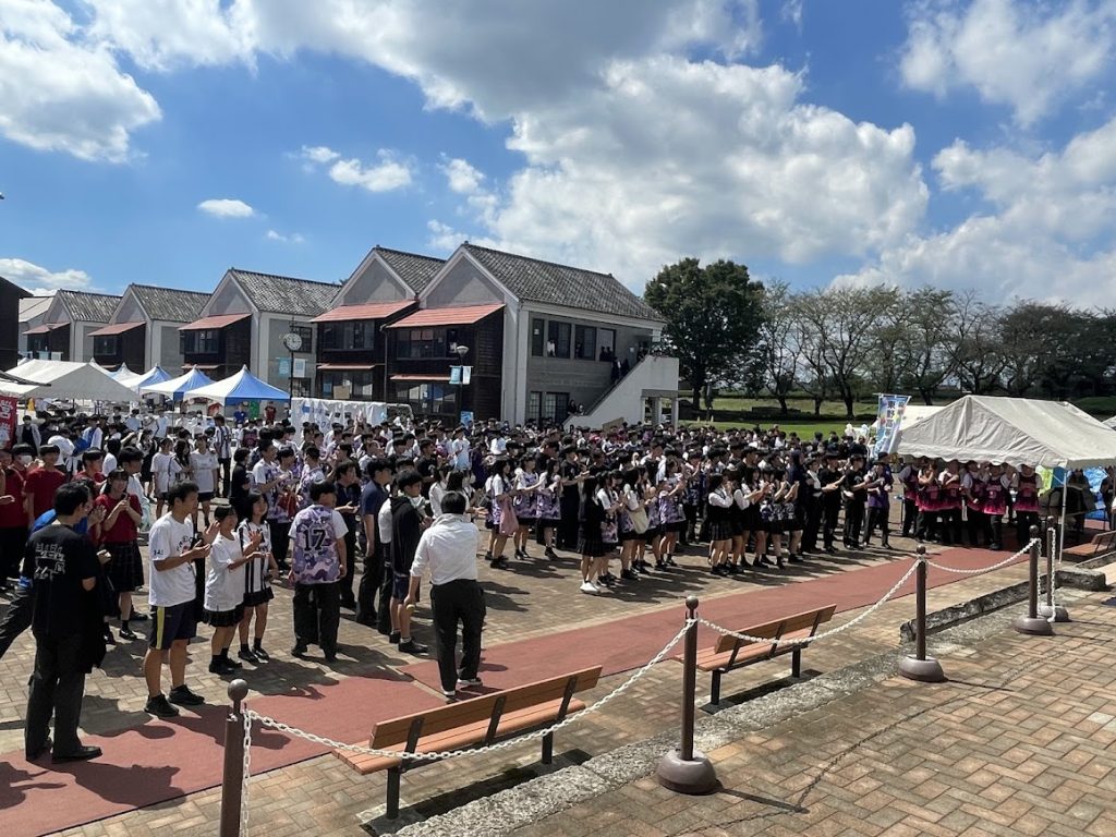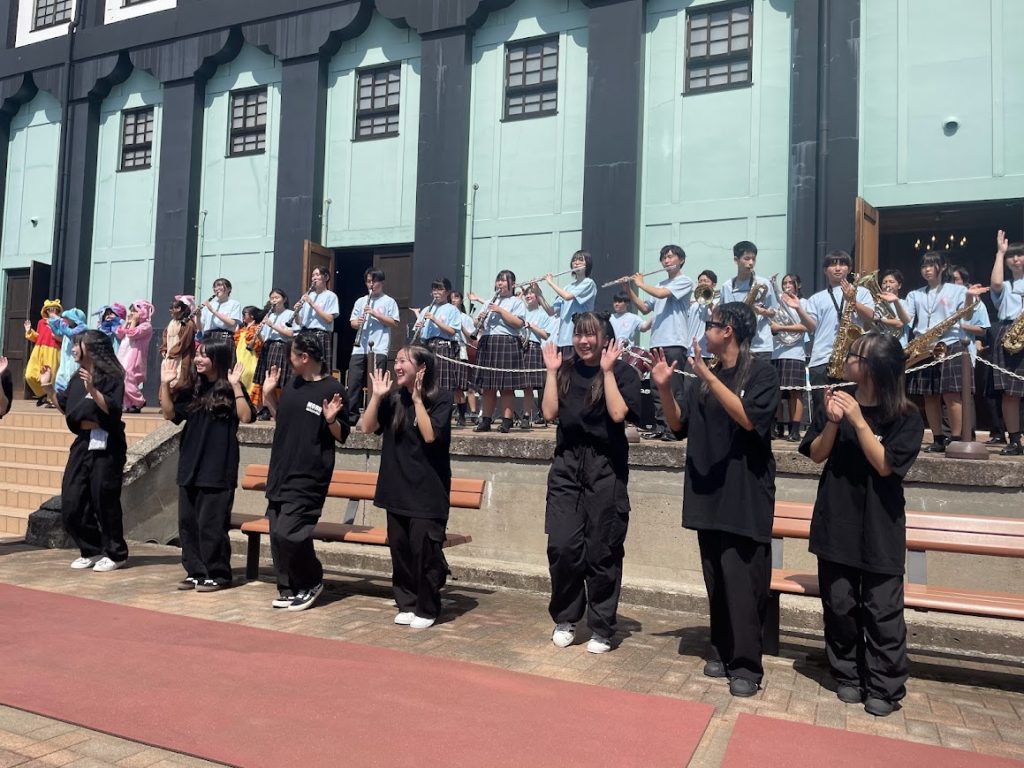 中央広場に集まり、吹奏楽部やダンス部、書道部によるパフォーマンスがありました。