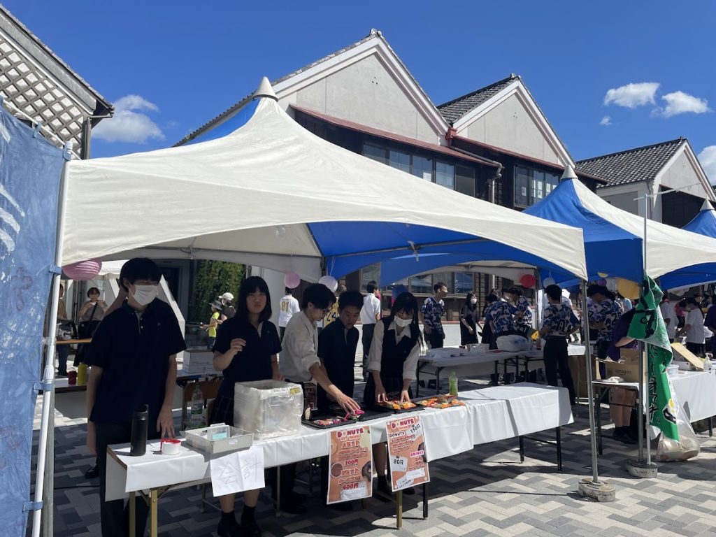 この広々とした場所を利用して食品販売を行いました。暑い中、テントを張って一生懸命販売していました。
