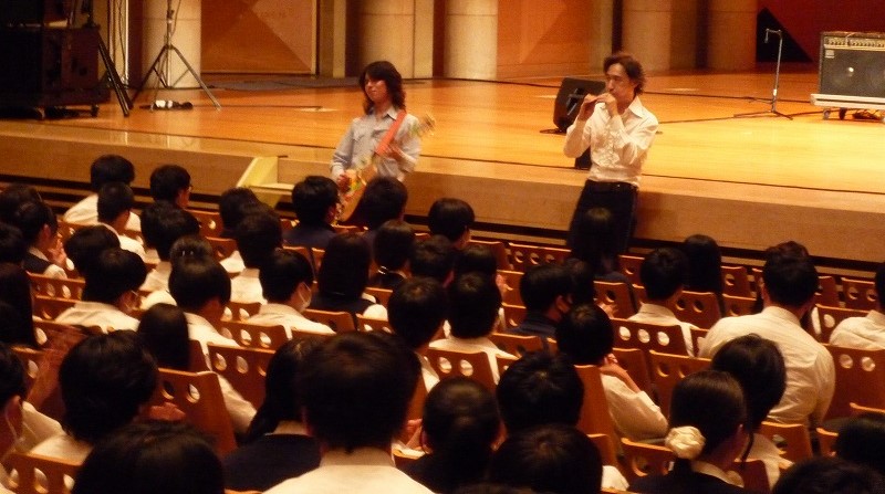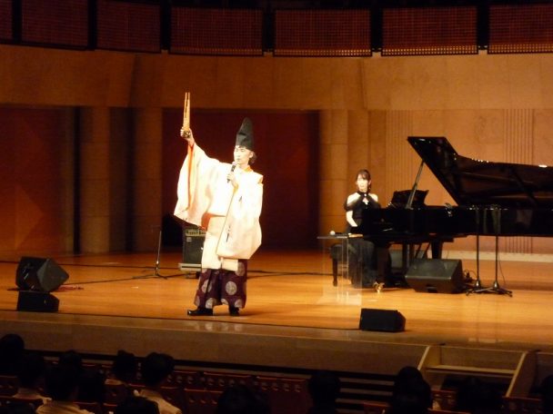 この日は、校外での芸術鑑賞祭。今年度は、東儀秀樹さんによる「雅楽」でした。