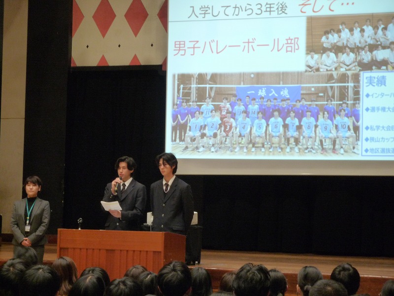 この日は、ダンス部によるパフォーマンスに始まり、学校説明、各コースの紹介、入試説明を行いました。