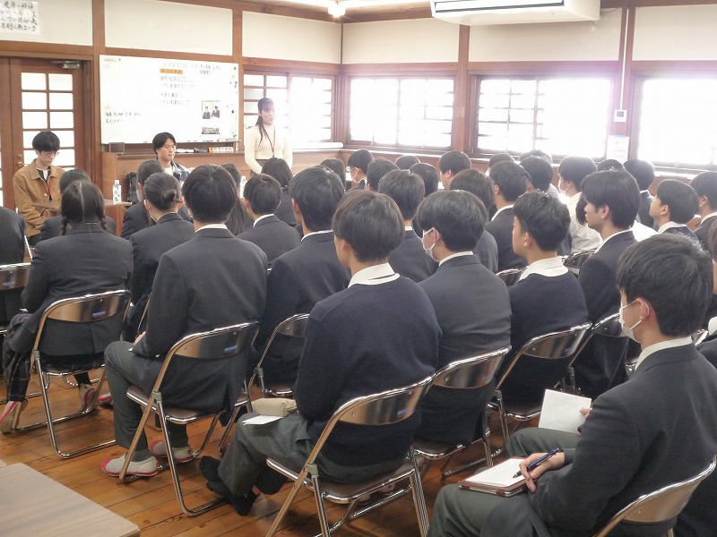 文化祭や修学旅行などの大きな行事が続いた2学期も終わりが近づいています。生徒たちは進路に向けた貴重な話を真剣に聞いていました。