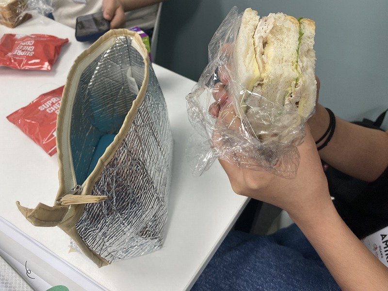 ランチはホストファミリーが持たせてくれたお弁当。サンドイッチ+野菜+フルーツのご家庭が多かったです。